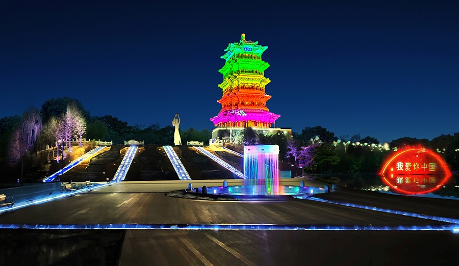 在祖国70华诞之际,由中科院设计研究所、同方股份有限公司、亮通光电技术(北京)有限公司共同完成的门头沟门城湖空间影秀项目,以“我爱你中国”为主题,用中国美、中国强、中国梦三个篇章为设计理念,分别展现了祖国的大好河山和70年的辉煌成就、渲染喜迎国庆的节日氛围,通过塔楼秀、水慕秀、水景秀以及灯光秀,营造出丰富多彩的光影空间,用绚丽的灯光燃耀夜空,深情告白祖国:我爱你中国!