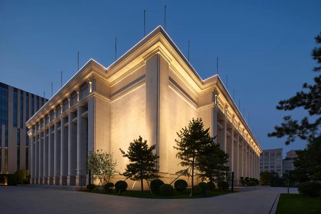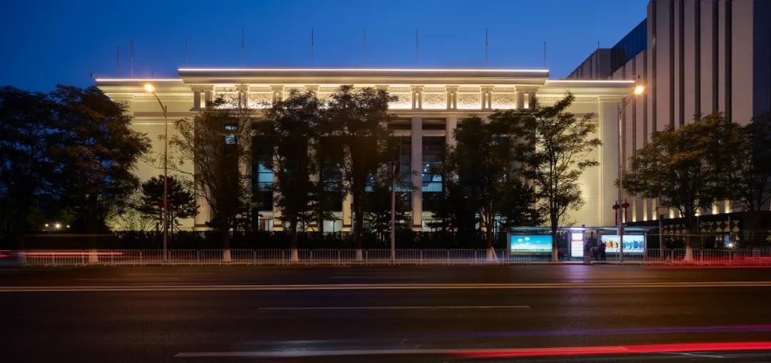 整体的照明设计本着延续和传承建筑的夜景风格(如人民大会堂、毛主席纪念馆、中国美术馆、国家博物馆等)。设计范围包括:主楼、附属楼、四合院的外立面的夜景照明,这些建筑物为中正的廊柱式建筑,整体风格大气庄重,照明主要突出建筑平和舒展、庄重恢弘的气韵。