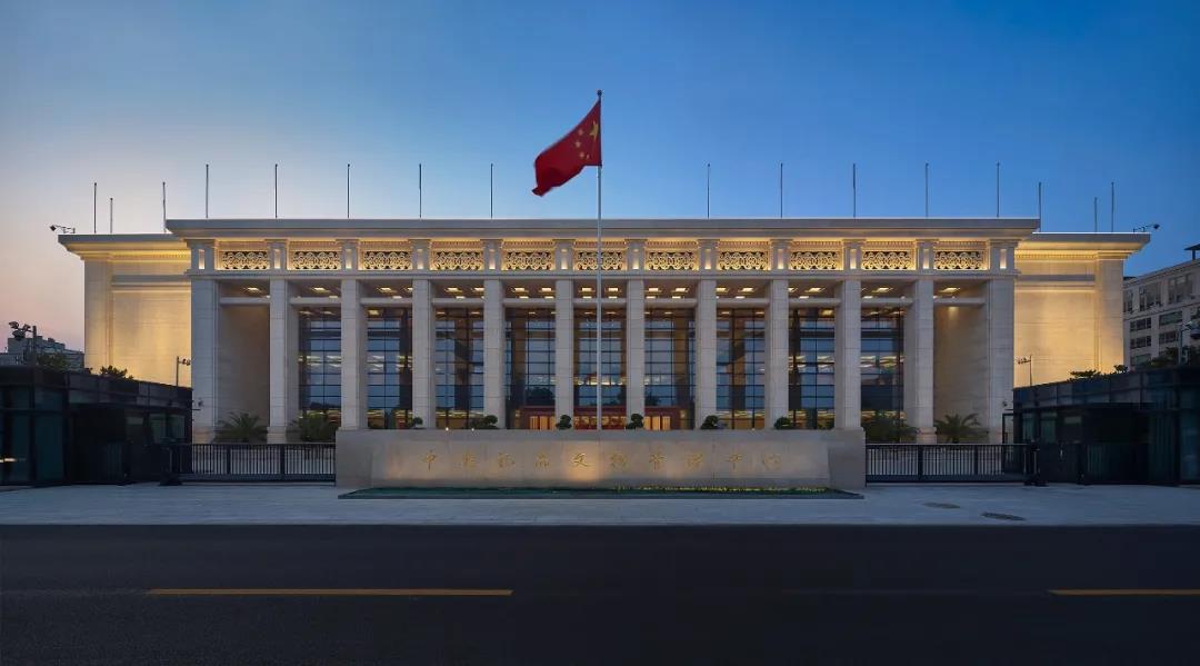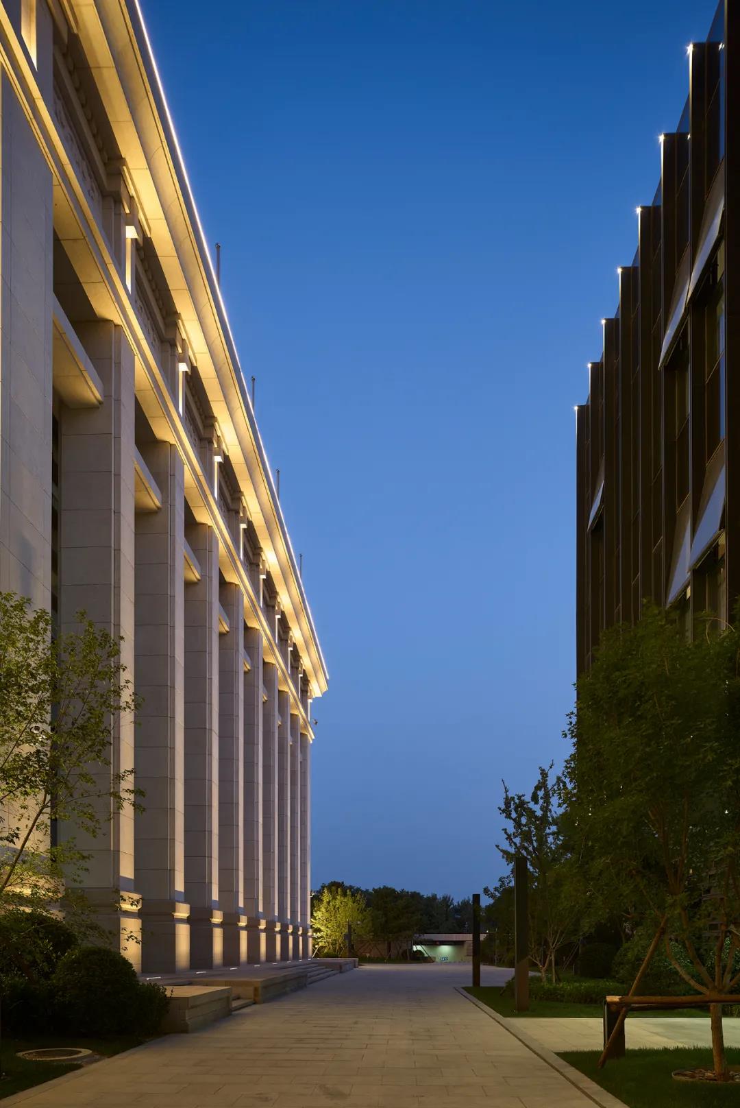 设计釆用集约的方形重檐廊式构形,传承了新中国成立以来国家传统建筑的范式,同时也吸收了西方古典建筑的特点,中西合璧,古今交融。照明设计以“礼”作为照明设计的中心思想,强调“礼”的理性和社会性,通过色温变化,配合温润如玉的白色石材体现了中国彬彬有礼、君子坦荡的大国形象,以包容和合的建筑语言反映礼仪天下的大国胸怀,继承了中西方千年传统文化,表现出经典、简约、时尚的特色。